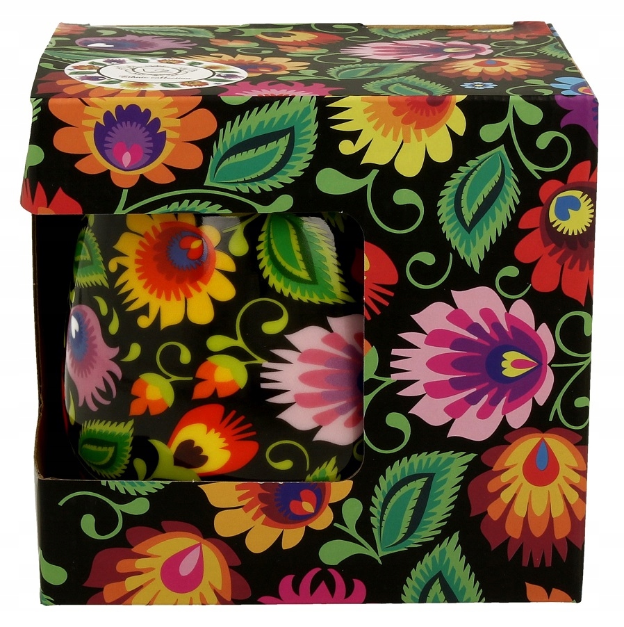 ✔️ Кружка та кришка виготовлені з порцеляни найвищої якості , прикрашений чудовим мотивом барвистих фольклорних квітів на чорному фоні