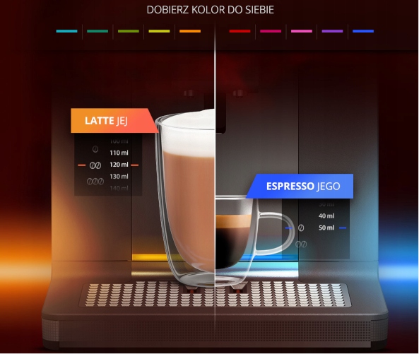 Крім того, система інтелектуального підсвічування допоможе вам у щоденному використанні кавомашини. Червоний індикатор інформуватиме вас про необхідні дії, наприклад, доливання води, кави чи спорожнення піддона для крапель.