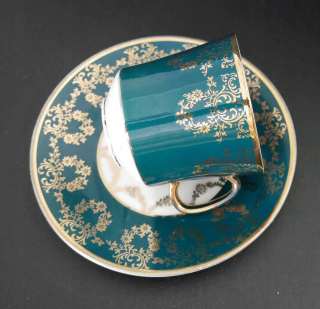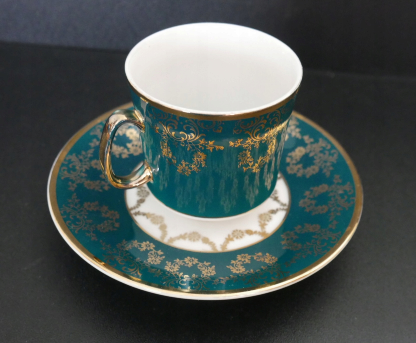 Прикраси-зелених фон золота, барвисті квіти всередині чашки та в середині чашок, близько 14 Span-8cm