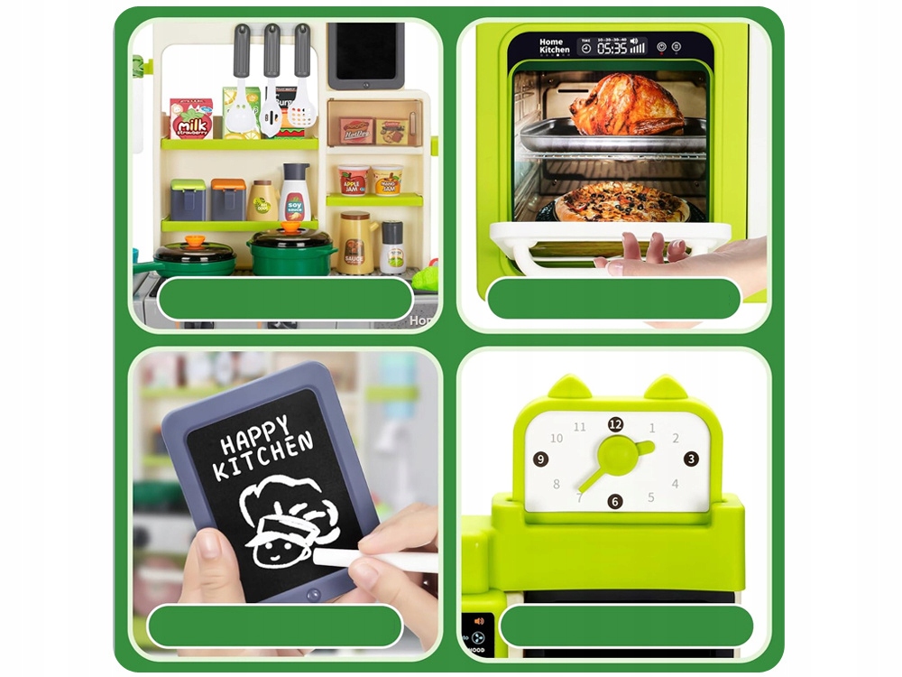 Весь упакований в естетичну коробку, що робить кухню чудовим подарунком для всіх випадків. Магазин пропонує широкі вибирають іграшкові кухні та додаткові аксесуари для побутових приладів, що ідеально підходить для маленьких кухарів!