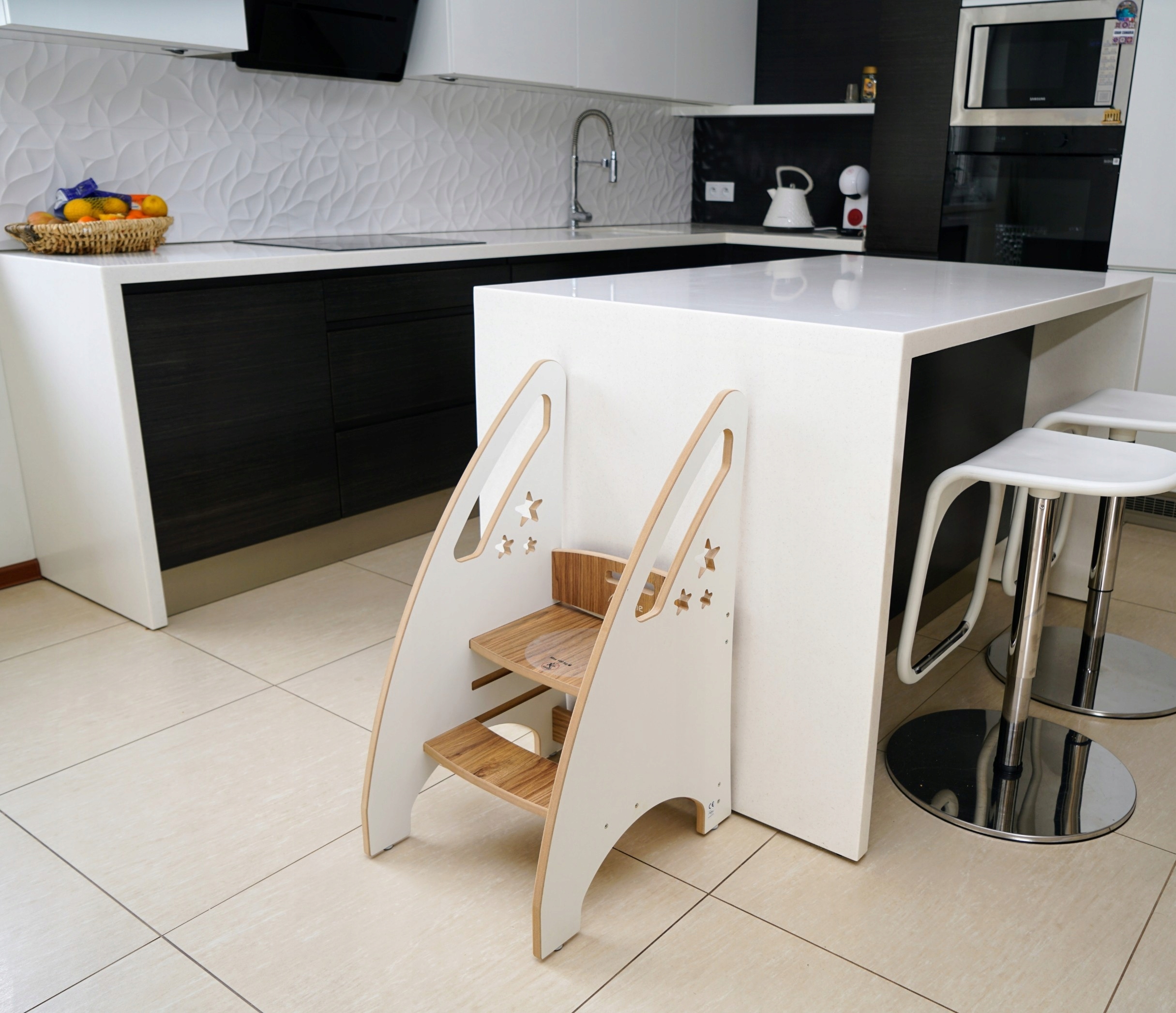 Кухонна асистент біла коричнева дерев’яна платформа кроки 81 см для дитини 2in1