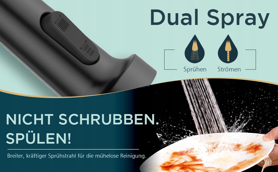 Функція подвійного душу з перемикачем важеля - 2 режими обприскування дозволяють змінити потік води на міцне розпилення. Завдяки цьому все промивало, від промивання овочів до ретельного миття.
