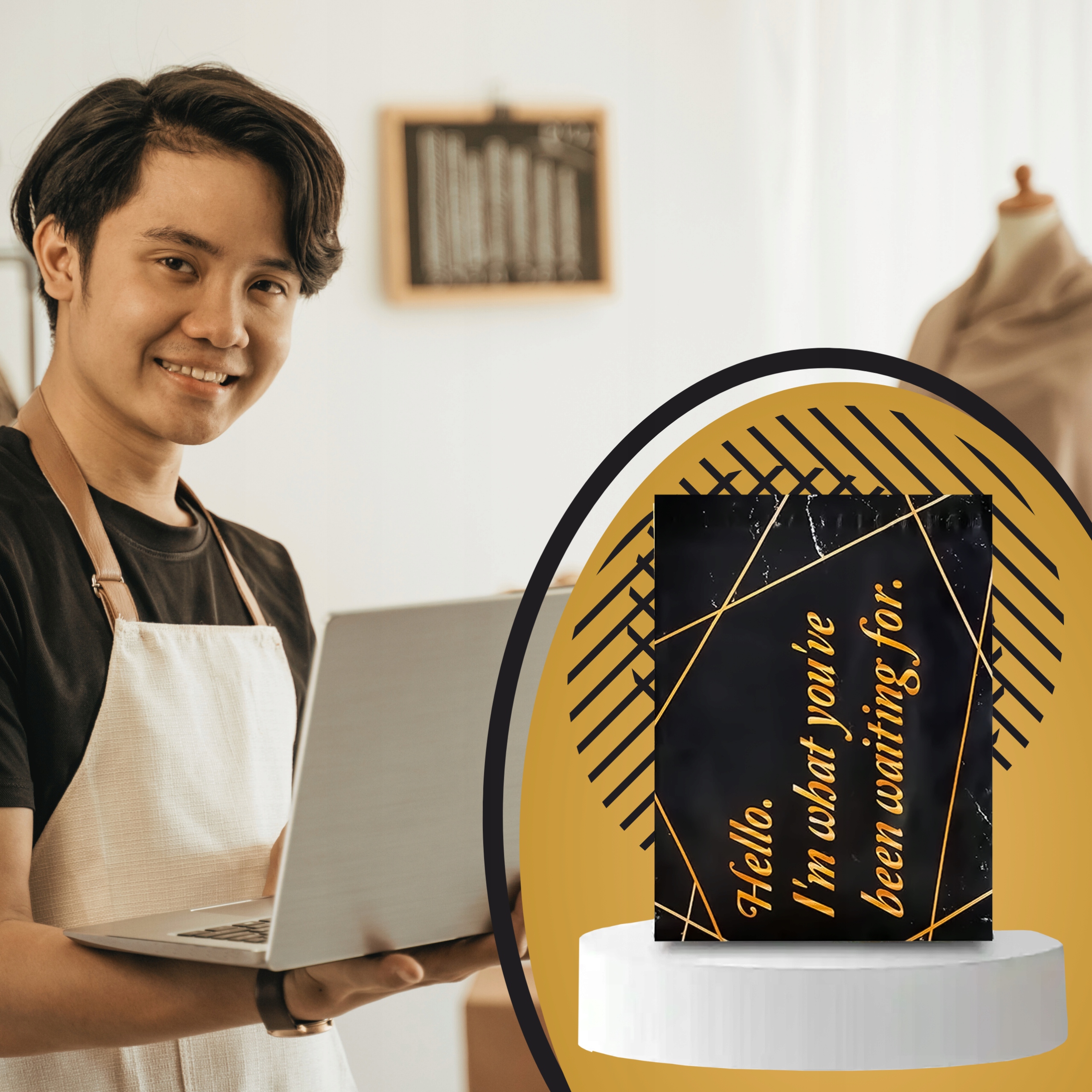 ✅ Колір/малюнок упаковки кур'єрської фольги: Чорний із золотим написом