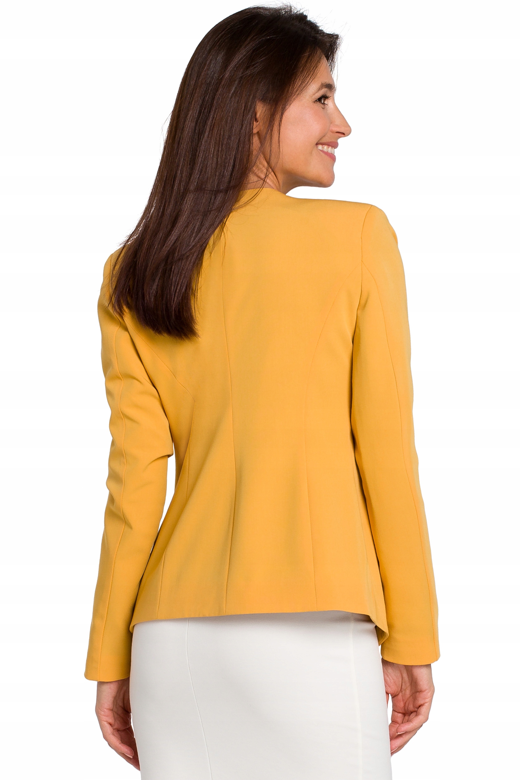 Приталеного крою без коміра, але з вільним передом, який можна застібати з боків, і з блискавками в кишенях. Ця куртка нагадує косуху і підходить для будь-якого сезону та випадку.