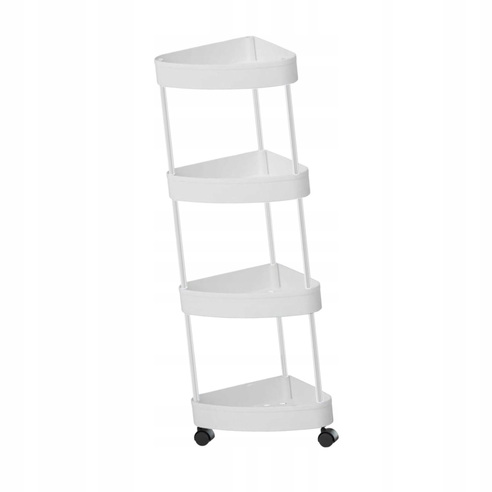 кутова полиця підлоги. Висока багатоповерхова ємність для зберігання в невеликій білому стенді 4 -го рівня