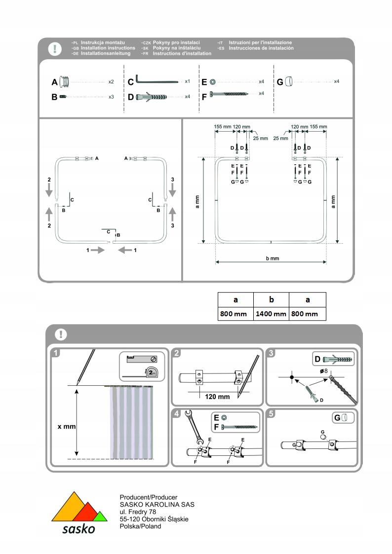 Наборі включає: білий алюмінієвий стрижень з діаметром 25 мм (4 елементів для підключення), 6x70 гвинтів (4 шт.), 8x40 дюбелів Фішер (4 шт.), Маскальні вилки (4 шт.), Викладки для отворів для труб (2 шт.), Збірник протилежних гвинтів (3 шт.).