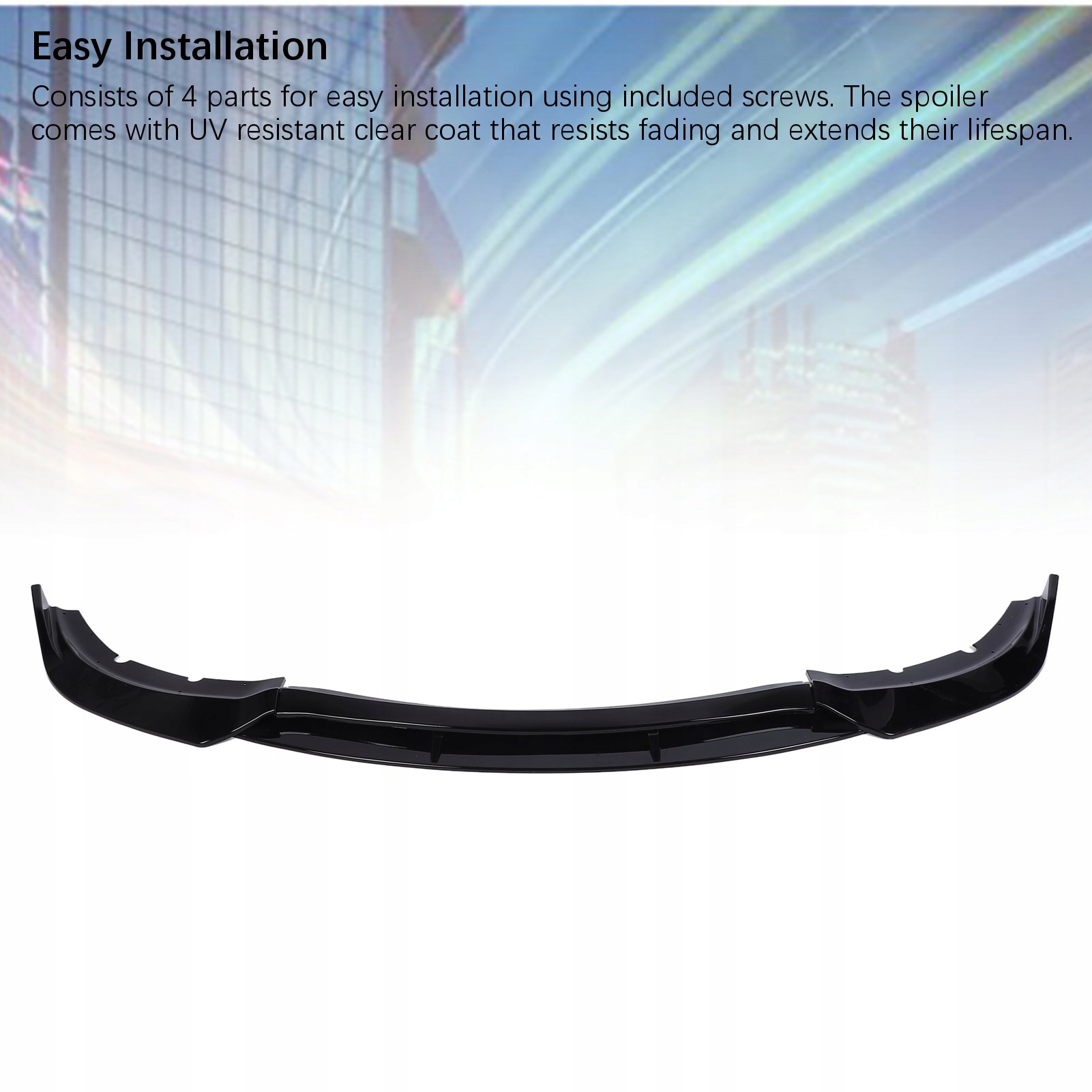 5. Легке встановлення: складається з 4 частин для легкого встановлення за допомогою гвинтів, що входять у комплект. Спойлер покритий прозорим покриттям, стійким до ультрафіолетового випромінювання, яке не вицвітає та продовжує їх термін служби.