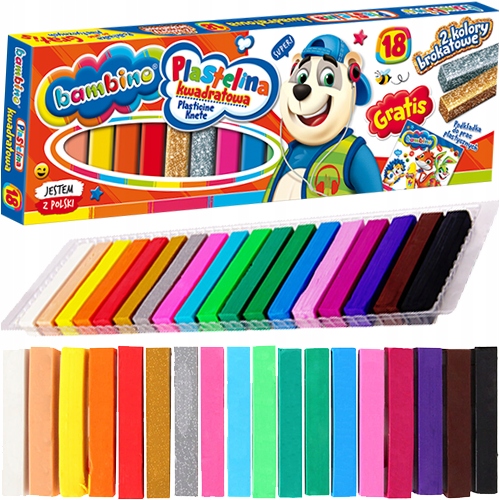 КВАДРАТНИЙ ПЛАСТЕЛІН BAMBINO 18 КОЛЬОРІВ + БЕЗКОШТОВНО