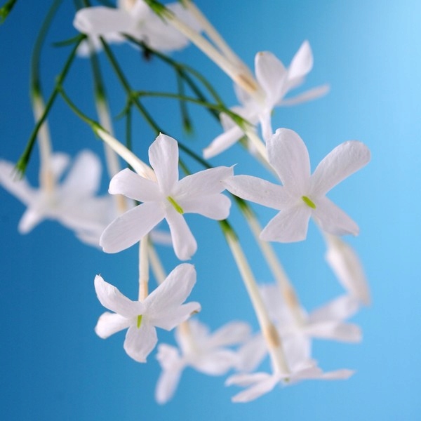 Квітковий жасмин — один із найпоширеніших видів жасмину, що належить до родини маслинових. До Європи його завезли в 16 столітті. У вирощуванні не викликає проблем, але взимку його потрібно тримати в приміщенні, тому що він не морозостійкий (до -5 С). Квітки ростуть з верхівок невеликими кистями. Цвіте з червня по жовтень. Пахне дуже інтенсивно. Квітковий жасмин виростає до 3 м. Любить тепле, сонячне місце, обов’язково захищене від морозу та сильного вітру.