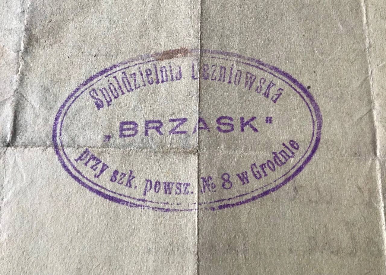Kwit przychodowy - Spółdzielnia 'Brzask' - GRODNO - 1936