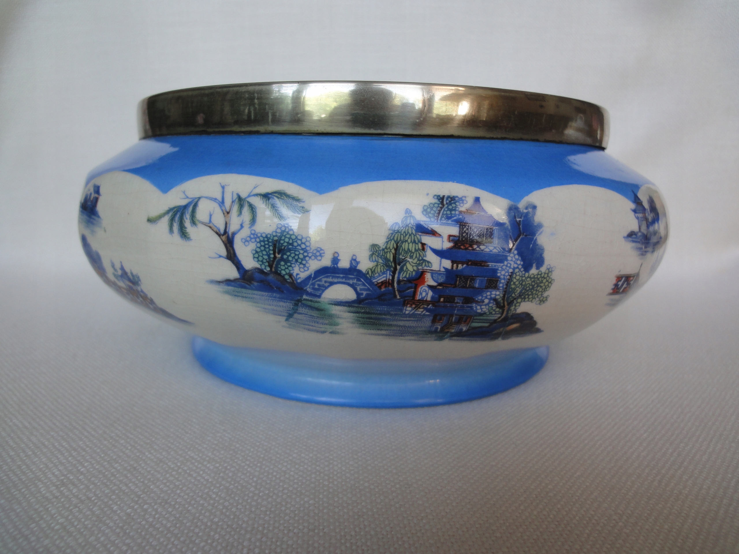 L & SONS HANLEY Anglia miska motyw japoński posrebrzana GF. B EPNS