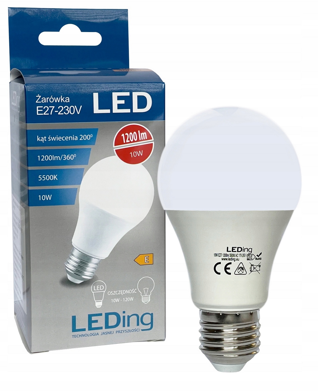 ЛАМПА LED 10W 1200lm E27 5500K холодний LEDING
