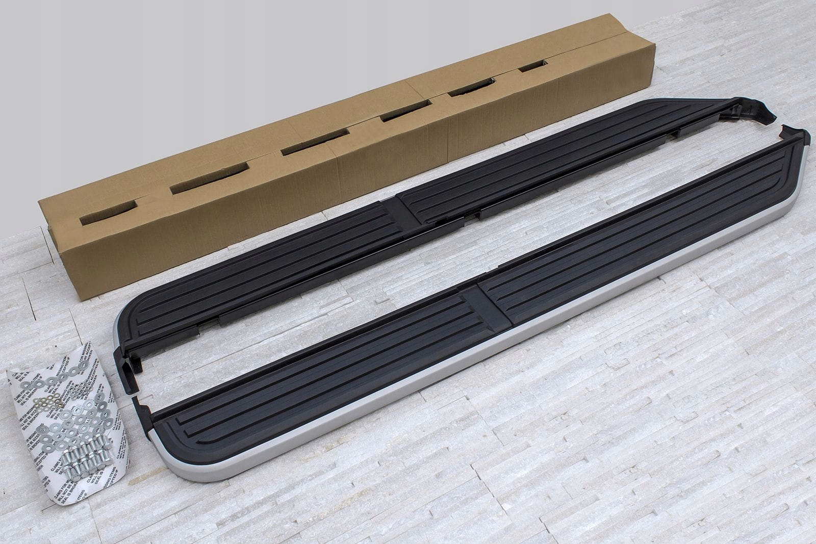 Набір бічних кроків (права та ліворуч), монтажні елементи та інструкції в наборі. Пороги встановлені на заводських точках. Встановлення кроків не вимагає буріння додаткових отворів! Ми рекомендуємо професійну збірку в семінарі ( ми знаємо з досвіду, що Найкраще використовувати послуги фарби або кузова, оскільки ці рослини найчастіше займаються складанням рейсів, доповнень та ступенів, тому збірка для цих рослин інтуїтивна діяльність ).