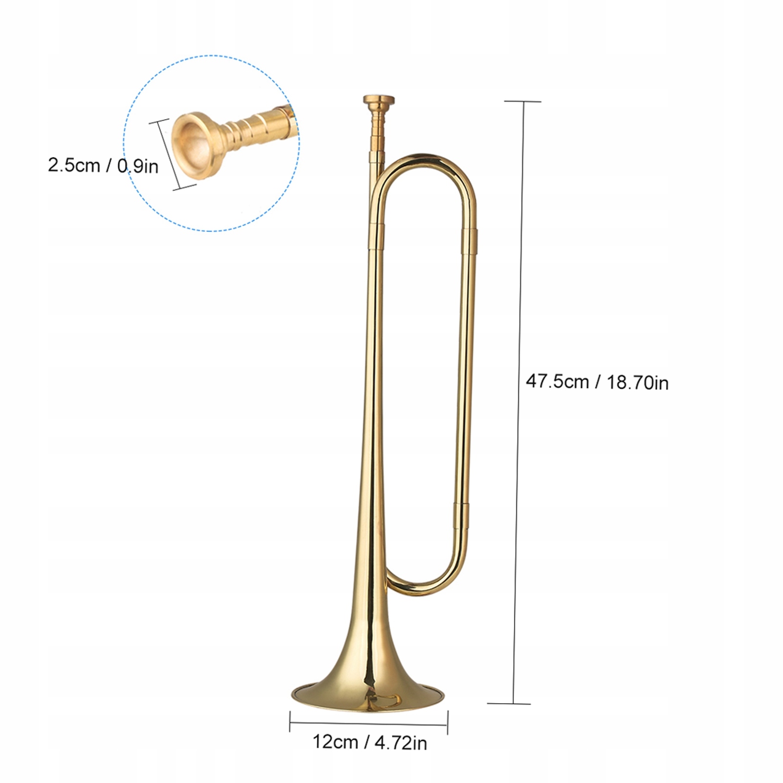 4. РОЗМІРИ СТРУКТУРА: Довжина труби 47,5 см (18,7 дюйма), діаметр дзвона 12 см (4,7 дюйма), обідок мундштука 2,5 см (0,9 дюйма).