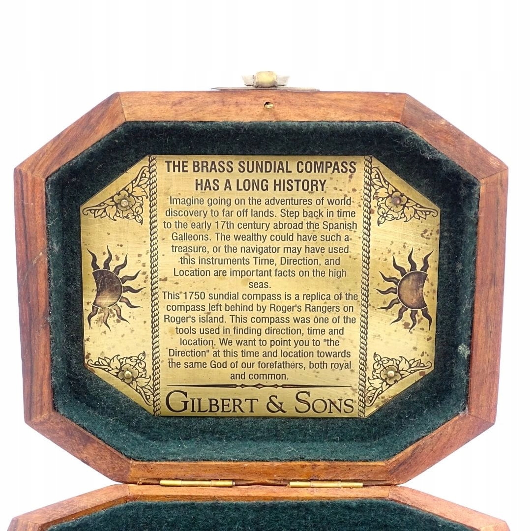 Латунний сонячний годинник з компасом у дерев’яній ретро -коробці