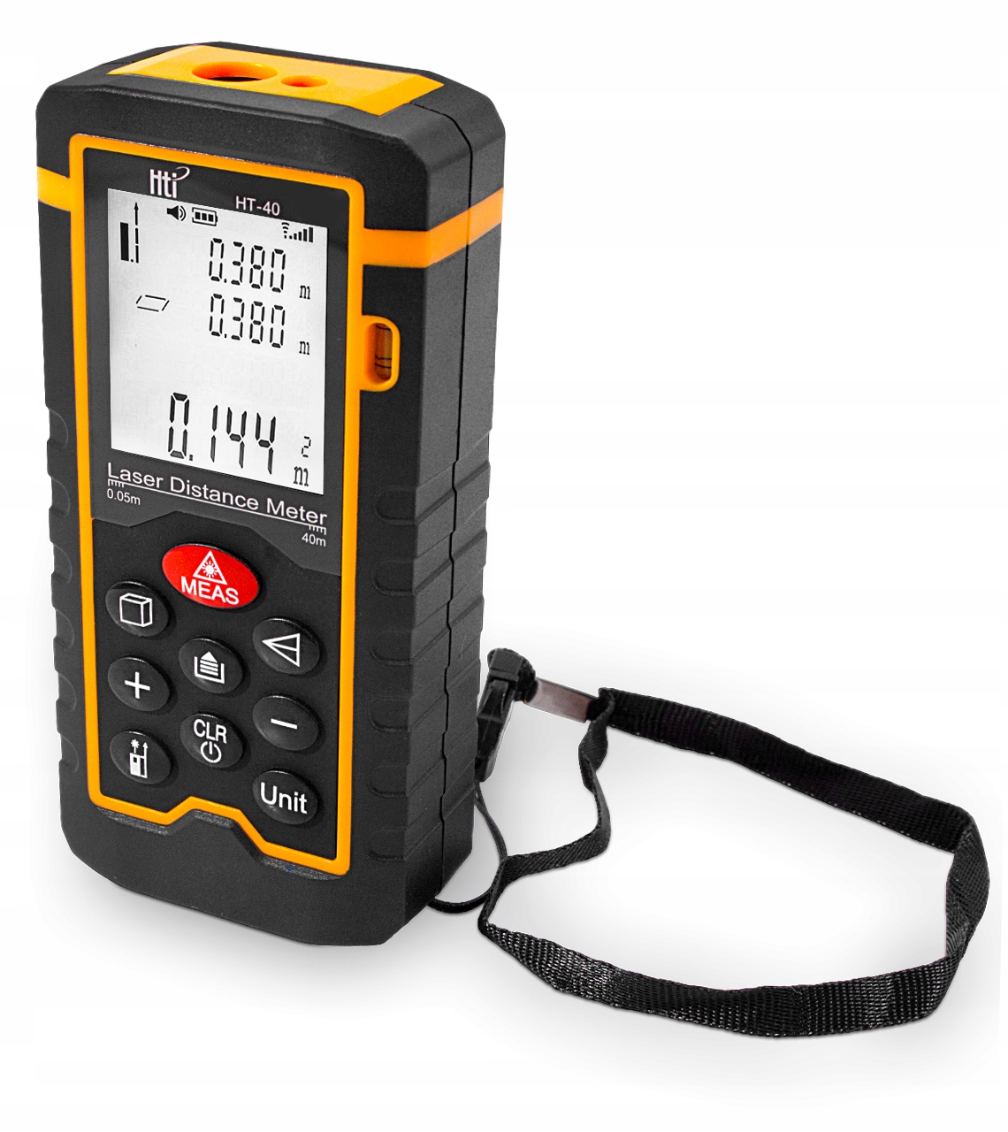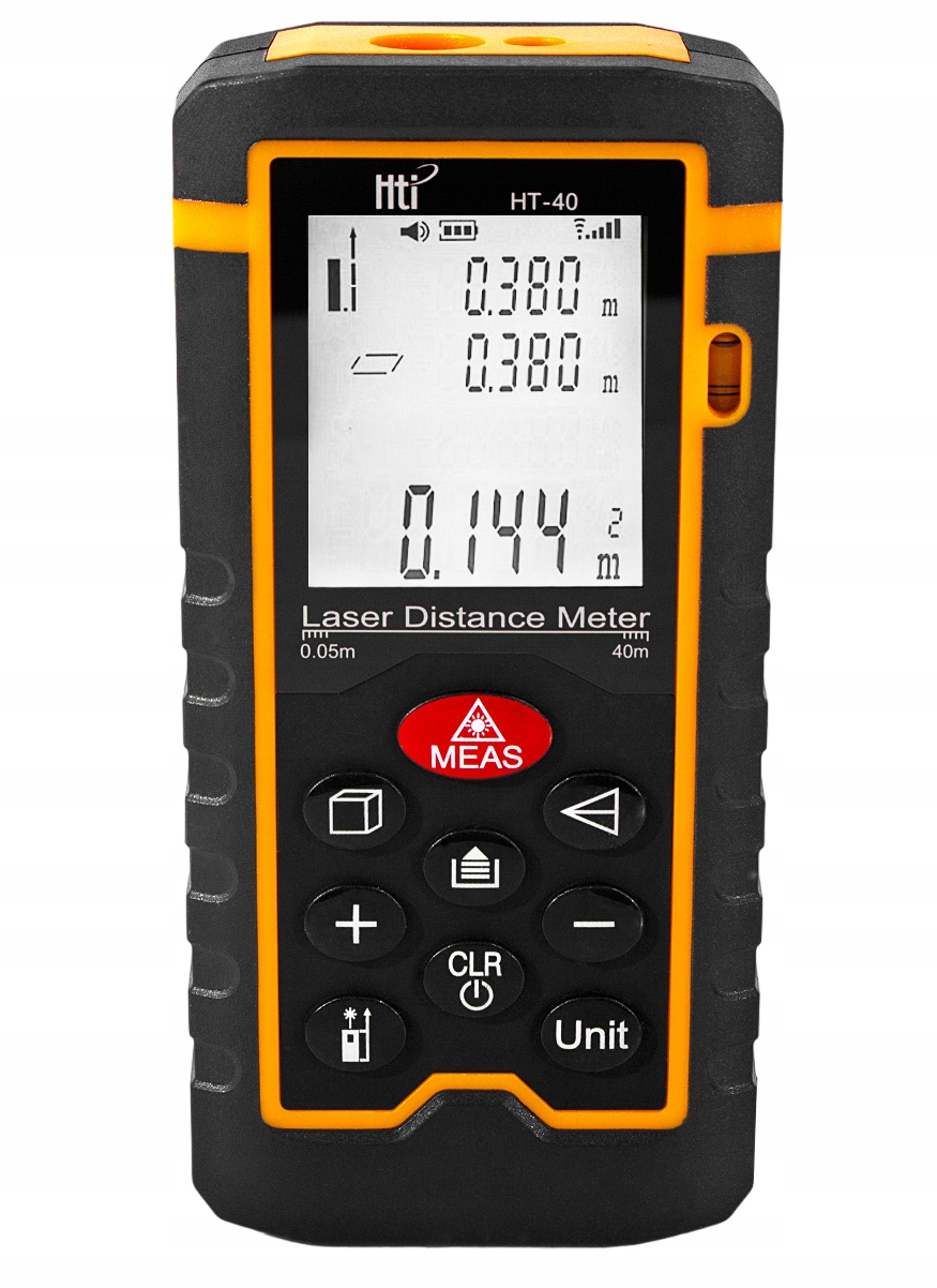 Лазерний далекомір HT-100 створено для зручного, практичного та точного вимірювання відстані, площі та об’єму. Діапазон вимірювання приладу становить від 0,05 до 100 м і точністю вимірювання +/- 1,5 мм.