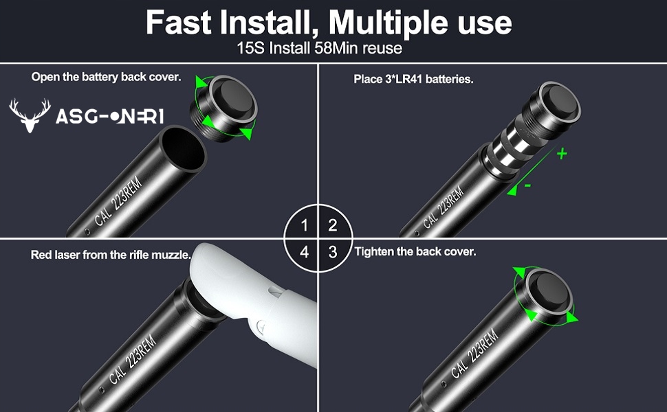 Креативний дизайн: 223-міліметровий лазерний приціл для зброї має унікальну на ринку технологію кнопкового перемикання, натискання хвостової кнопки активує стовбурний лазер, повторне використання без розбирання, вирішує проблему втрати батареї, коштує вдвічі менше для вас