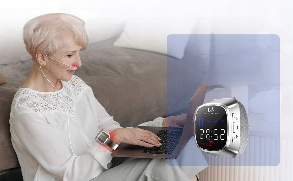 потрапляйте в інноваційний пристрій для терапії холодною лазерною терапією, який використовує червоне світло низької інтенсивності для покращення здоров'я та добре. Завдяки двом способам використання - годинником та аплікатором для носової порожнини - підтримує лікування риніту, покращує якість сну, а також допомагає знизити артеріальний тиск, рівень цукру та жиру в крові.