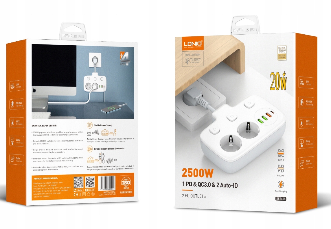 Ldno ldo 2 x розетка, 3 x usb, usb-c