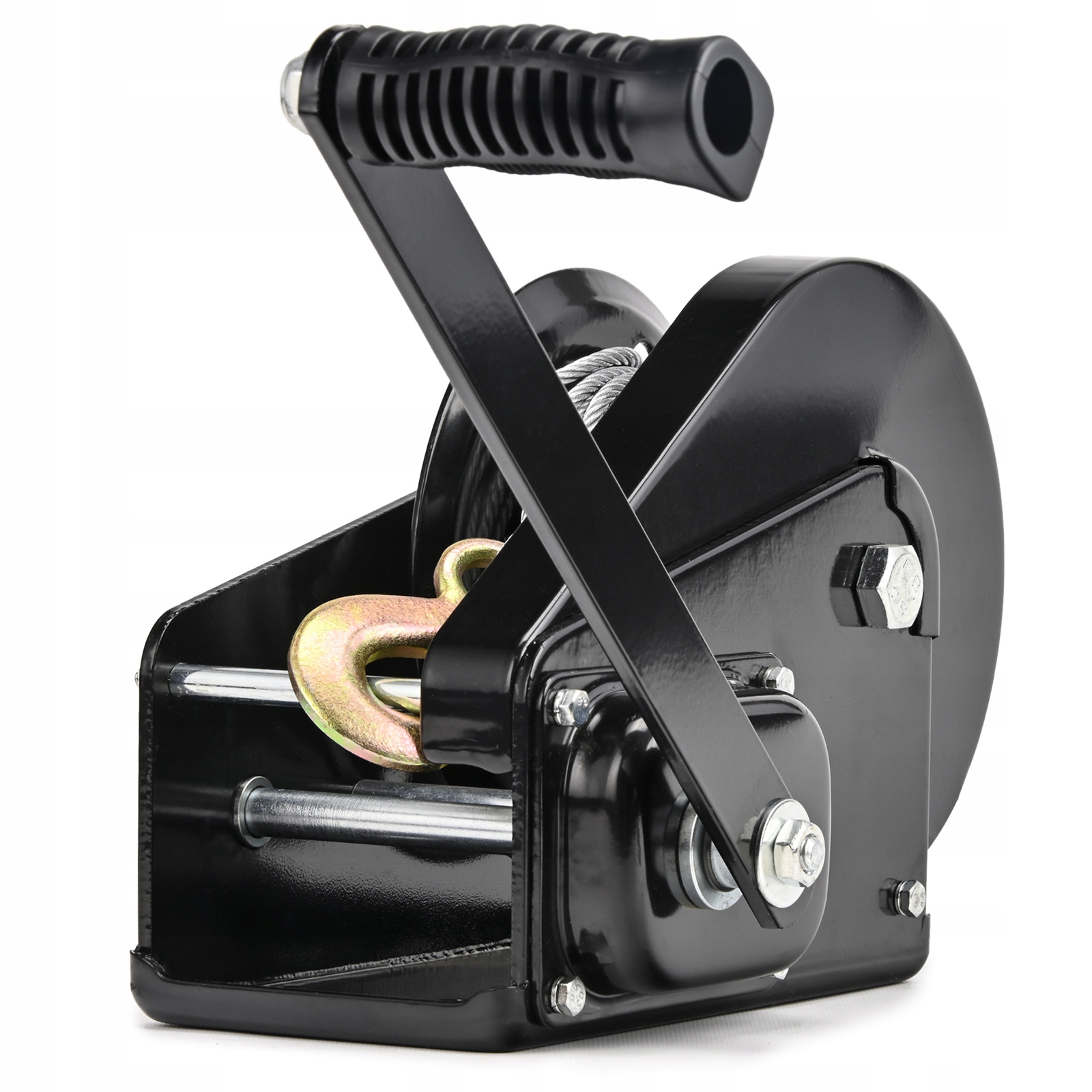 Лебідка ручна виготовлена з високоякісних матеріалів, що забезпечує її довговічність і надійність. Оснащений міцним литим гачком з поворотною пружиною. Обладнання забезпечує безпечний і безпроблемний підйом і опускання предметів.