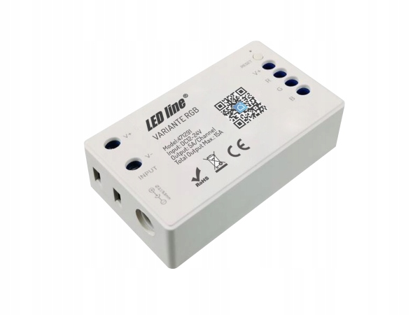 Контролер Variante RGB - це пристрій, який використовується для управління світлодіодними стрічками RGB. Контролер може бути підключений до стрічок, що працюють на 12 В, із загальною потужністю до 192 Вт або 24 В із загальною потужністю 384 Вт. Для того, щоб підключити світлодіоди RGB з більшою потужністю, використовуйте відповідний підсилювач сигналу.