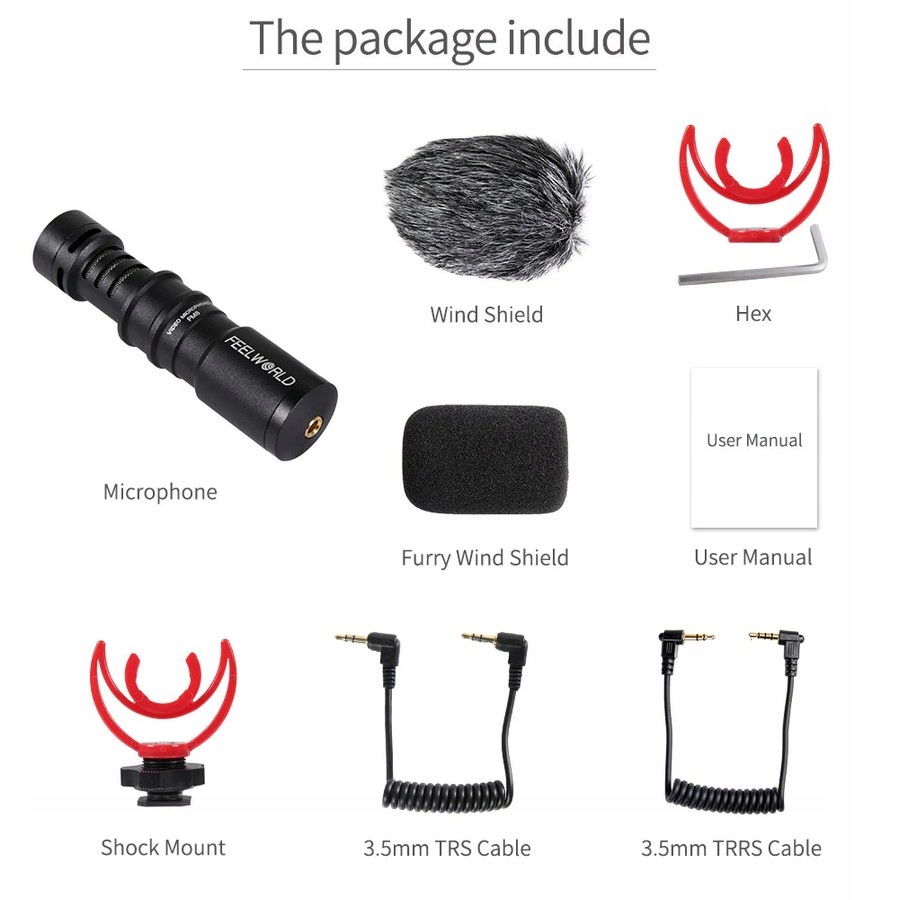 Відеомікрофон важить лише 42 г, його легко носити. Батарейки не потрібні, його можна використовувати з відеокамерами, цифровими дзеркальними фотоапаратами або смартфонами. Спрямований кардіоїдний мікрофон із протиударним кріпленням мінімізує навколишній шум.