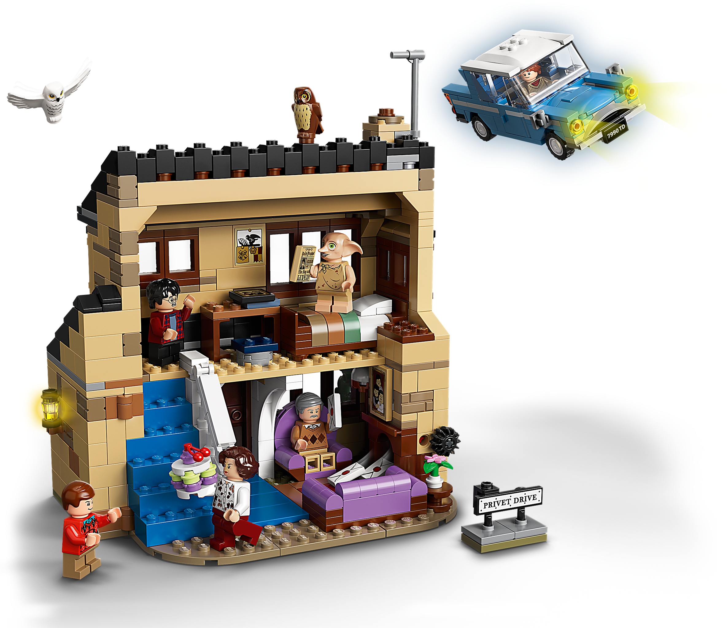 - Набір LEGO Harry Potter Privet Drive 4 (75968) дозволяє відтворити багато захоплюючих сцен із фільм, включно з листами з каміна та втечею Гаррі на літаючому Ford Anglia. Діти також можуть зазирнути в шафу Гаррі під сходами.