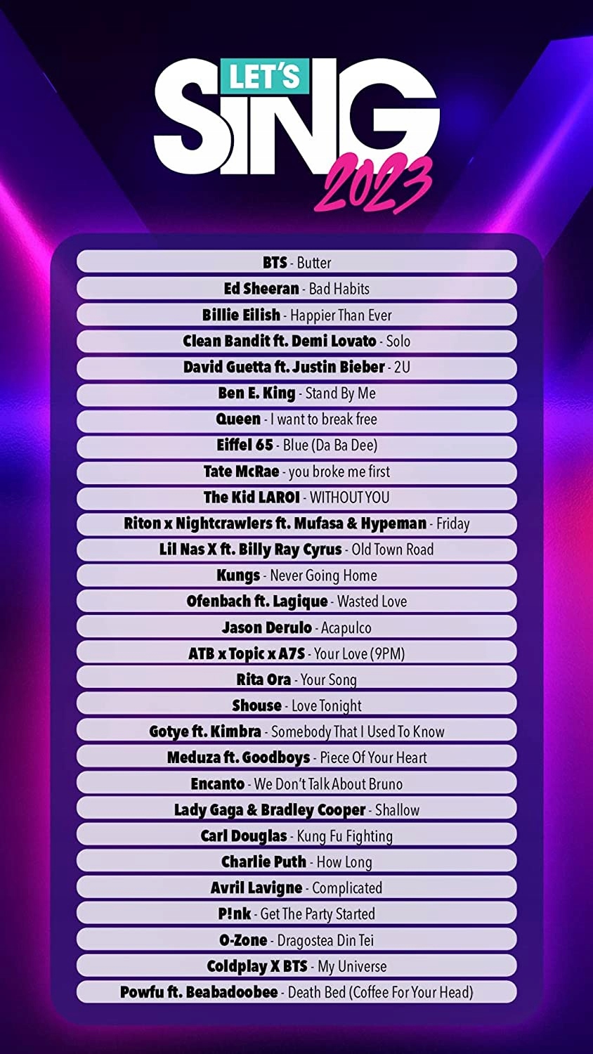 Стань суперзіркою в Let's Sing! Готові взятися за ідеальне поєднання 30 нових хітів і класики всіх часів і розпалити натовпи? Співайте поодинці або киньте виклик своїм друзям на голосовий бій в режимах онлайн і офлайн, щоб раз і назавжди визначити, хто найкращий співак. У режимі Let's Party киньте виклик до восьми людям або підніміться на вершину світового онлайн-рейтингу.