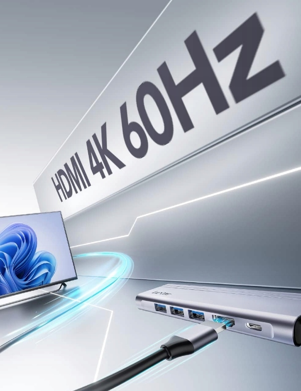 Швидка продуктивність USB 3.2 Gen 1 зі швидкістю до 170 МБ/с із 3 портами USB-A та слотами для карток пам’яті SD/TF дозволяє підключати клавіатуру, мишу чи зовнішні компоненти без будь-яких затримок, а функція OTG допомагає передавати файли між вашим ноутбуком і мобільними пристроями USB -C будь-де та будь-коли.