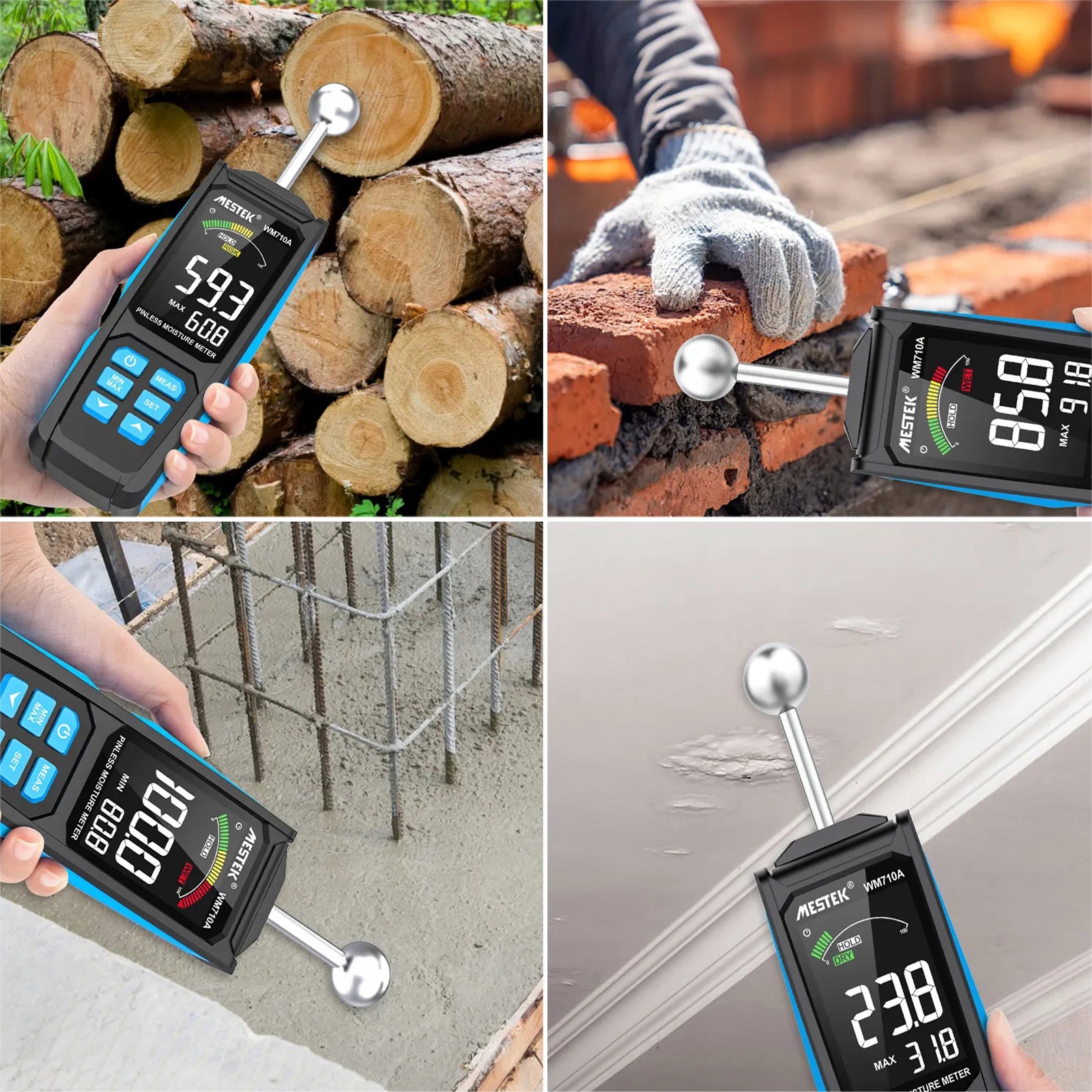➡daps, щоб перевірити вміст вологи з дерева та будівельних матеріалів, таких як гіпсові дошки, шифер, шифер, плитка, картон, штукатурка, бетон та розчин, а також для ремонту витоків води, а також плитки для підлоги або кемпінгу тощо.