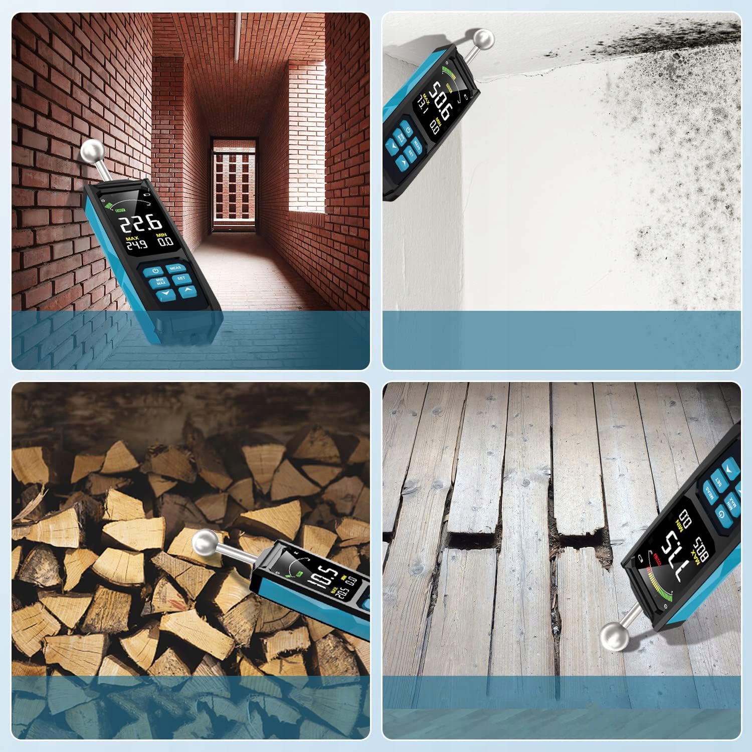 - підходить для тестування вологості дерев’яних та будівельних матеріалів, таких як стінові панелі, шифера, плитки, картон, гіпс, бетон та міномет, а також для ремонту витоків води, перевірка вологи стінки ліжка, підлоги або караванів тощо. швидко виявити цвіль і захистити будівлю будинку чи квартири.