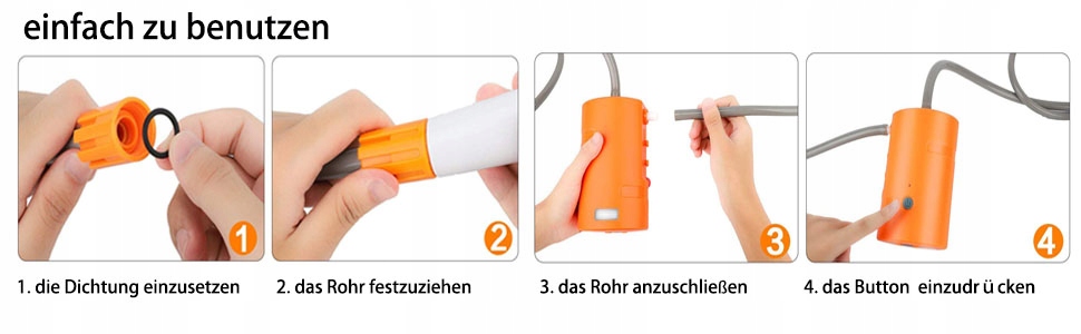 - Подача акумулятора та зарядка USB -побудований -in літієвий -іон -акумулятор з 4400 мАг, завантажений насос підключений через USB до ноутбука, автомобільного адаптера або комп'ютера, повна зарядка дозволяє максимум 1 годину безперервної роботи; Кабель для зарядки USB міститься в доставці, повне навантаження триває близько 4 або 5 годин; Переконайтеся, що ви повністю заряджаєте його перед першою користуванням.