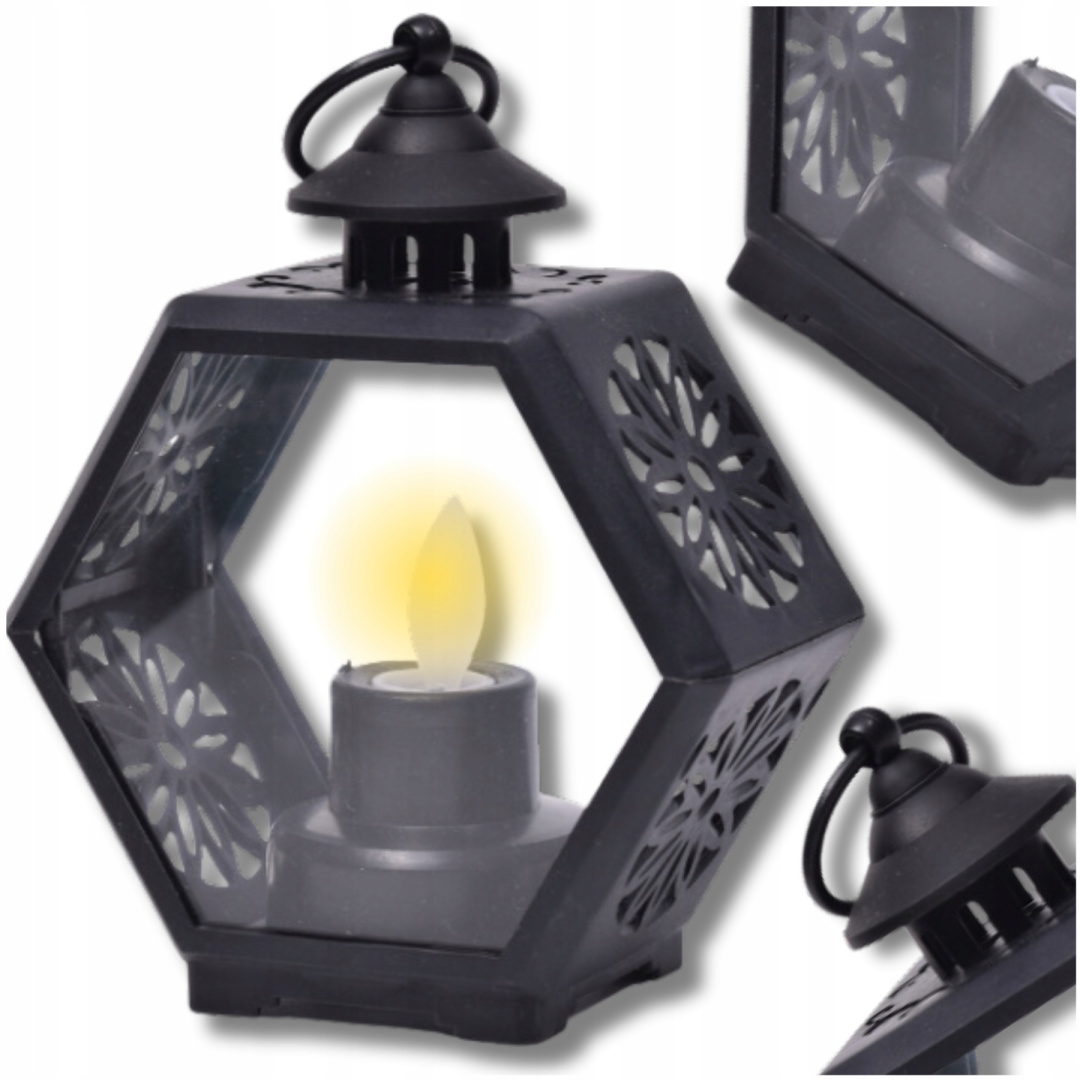 ✅ Елегантне покриття: Високоякісний пластик і сучасний дизайн ліхтаря роблять його естетичним і довговічним. Особливу увагу привертає встановлена всередині свічка, яка містить джерело світла.