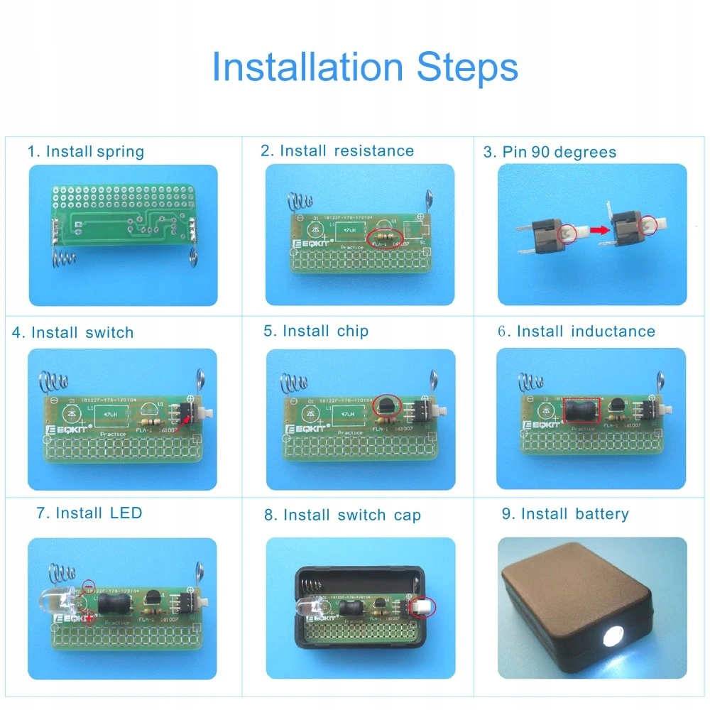 Системи мають на пластині схему друкованої збірки. Вам потрібно звернути увагу на полярність за такі елементи, як конденсатори, діоди, транзистори. У випадку світлодіодів довша нога - це плюс +, більшість елементів описали параметри на корпусі. Резистори можуть мати позначення смужок, їх опір та толерантність можна прочитати за допомогою калькуляторів, доступних в Інтернеті або вимірюванням лічильника. Порядок складання зазвичай безкоштовний, залежно від системи, ми спочатку встановлюємо найменші елементи.