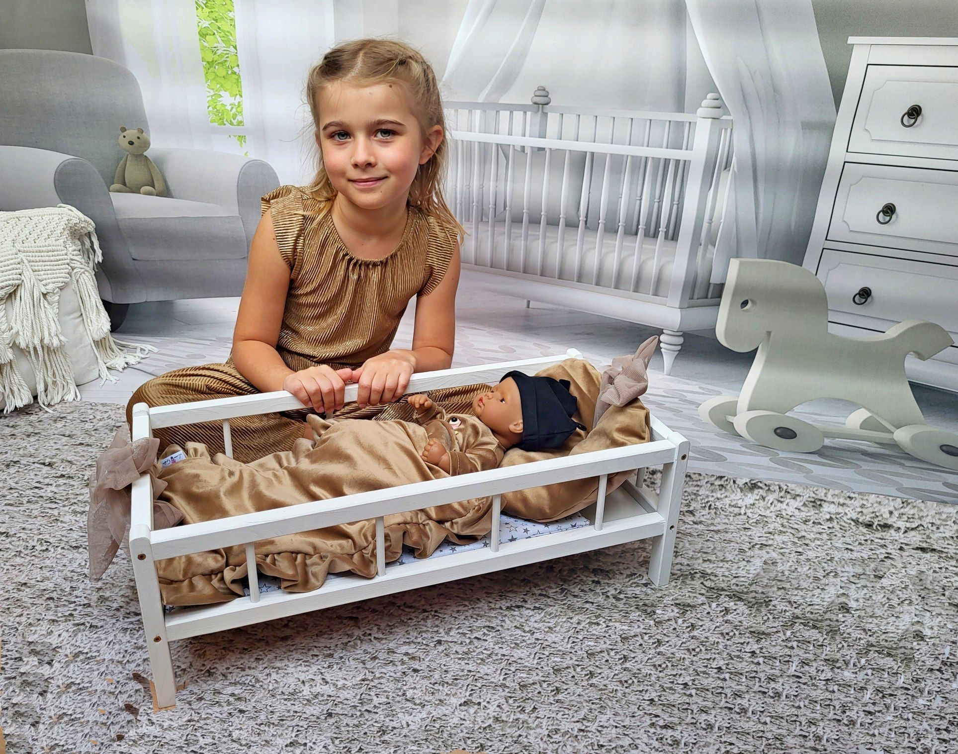 Ліжко 2 в 1 - Велика колиска XXL для ляльок з постільною білизною з трьох предметів