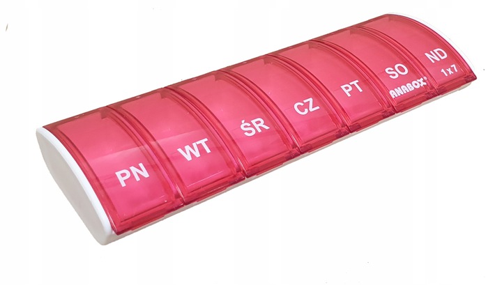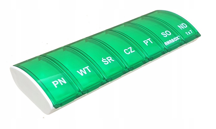 ANABOX® 1 x 7 — це коробка для ліків із сімома окремими дозаторами, які описані за днями тижня.