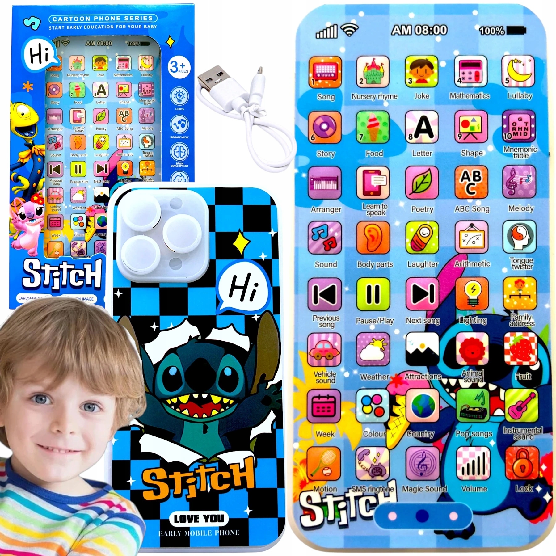 Навчання та гра в одну - у версії з мотивом стібка! Цей чарівний смартфон - ідеальний гаджет для наймолодших дослідників. Це виглядає як справжній телефон, але замість того, щоб дзвонити - він викладає, розважає та розвиває уяву. Маючи понад 40 інтерактивних функцій та звуків, малюк може слухати пісні, вивчати листи, форми, кольори, тварини, цифри та багато іншого!