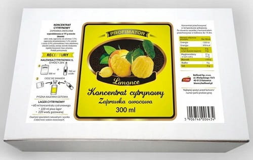 Фруктовий концентрат PROFIMATOR виготовляється шляхом пресування фруктів у соки та згущення їх шляхом випарювання води. Для належного смаку в лікери окремо додають цукор, фрукти та інші інгредієнти. Приправа PROFIMATOR є повною рецептурою - містить натуральний фруктовий сік, його солодкість, кислотність і природний колір. До 300 мл продукту потрібно додати 0,7 л горілки і 1 л лікеру або настоянки міцністю 28%. Лимонна настоянка зігріє наш організм і підтримає його в боротьбі із застудою. Крім того, він є ідеальним доповненням до важких для травлення страв, оскільки має очищаючі властивості. Тому він чудово підійде не тільки в холодні дні, а й під час зустрічі з друзями.
