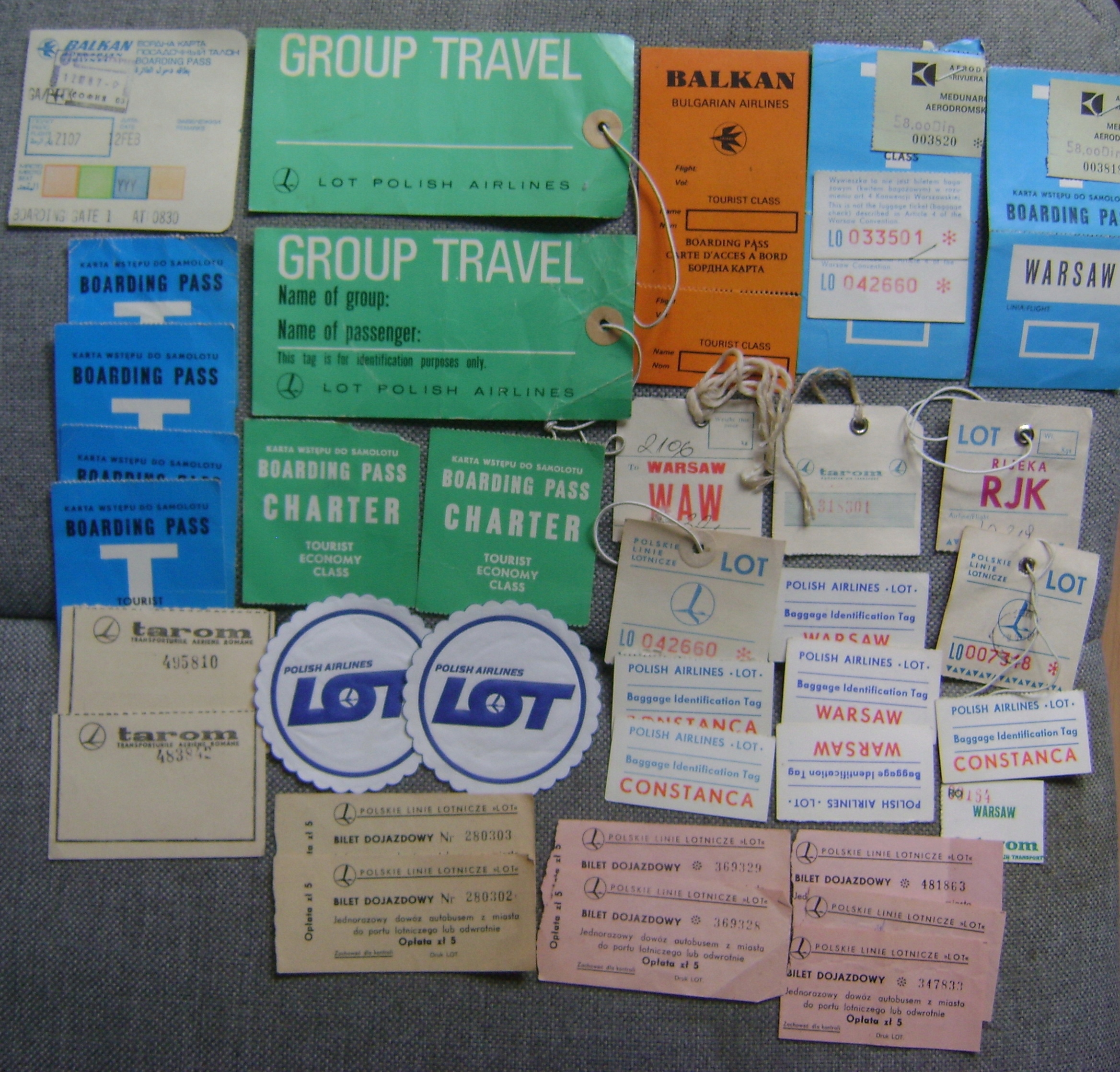 LINIE LOTNICZE -LOT, TAROM,BALKAN -karty wstępu,bagażowe, bilety-36 sztuk