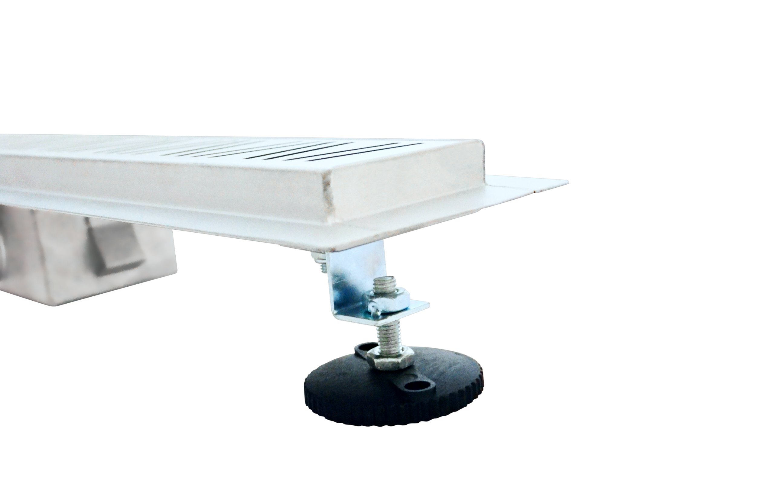 Лінійний дренаж з кришкою (5 конструкцій на вибір) з амортизаційні бампери. Розмір дренажу 60 см х 7 см, додатково фланець 2 см з кожного боку, виготовлений з нержавіючої сталі SUS304, товщиною 1,2 мм (злив) і 1,5 мм (кришка)