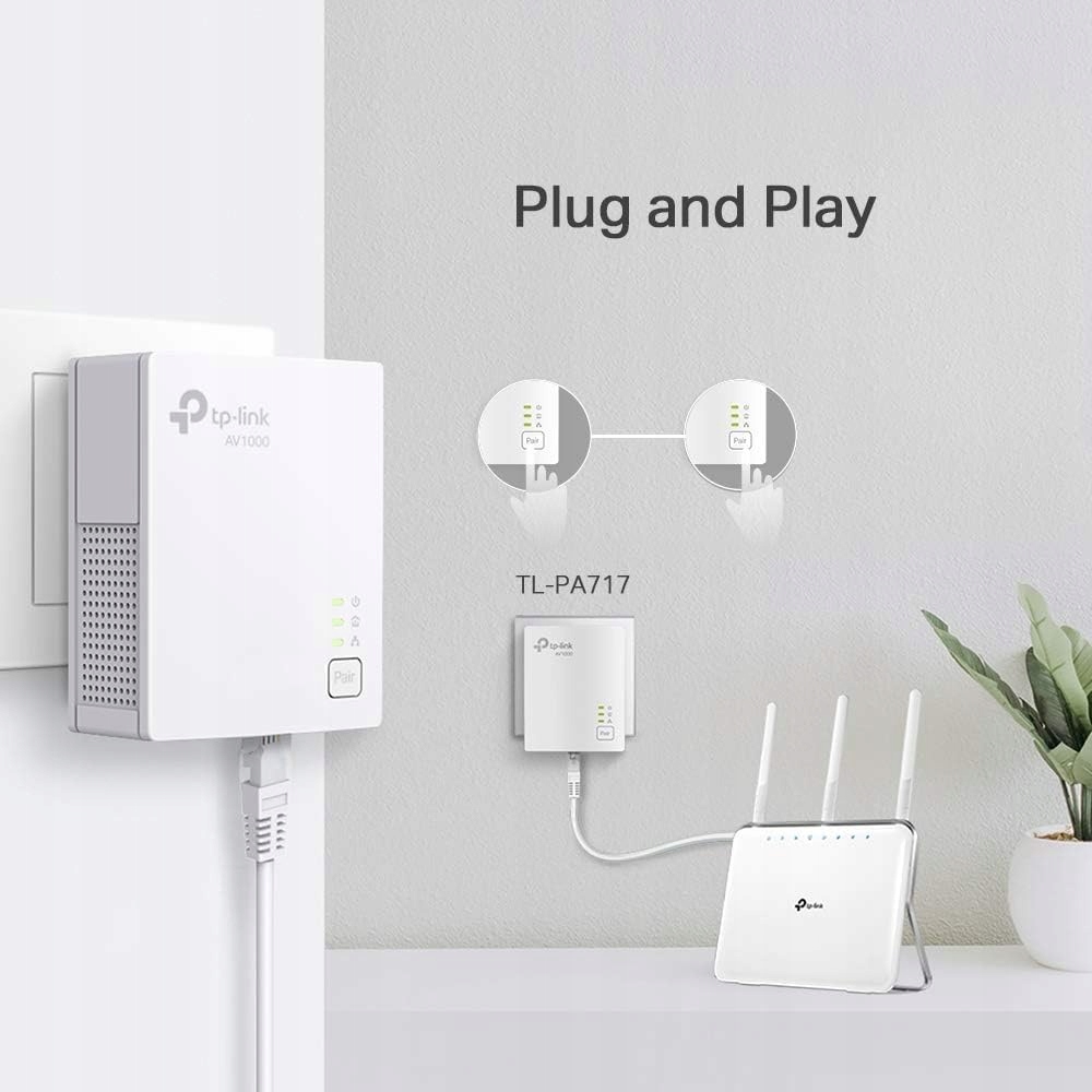 TP-Link TL-PA717 KIT Starter Kit з 1 гігабітним портом Powerline, швидкістю передачі даних до 1000 Мб/с, ідеально підходить для потокового потокового потокового відео/4K онлайн-ігри та онлайн-ігор (лише провідних), це робить не вимагає конфігурації