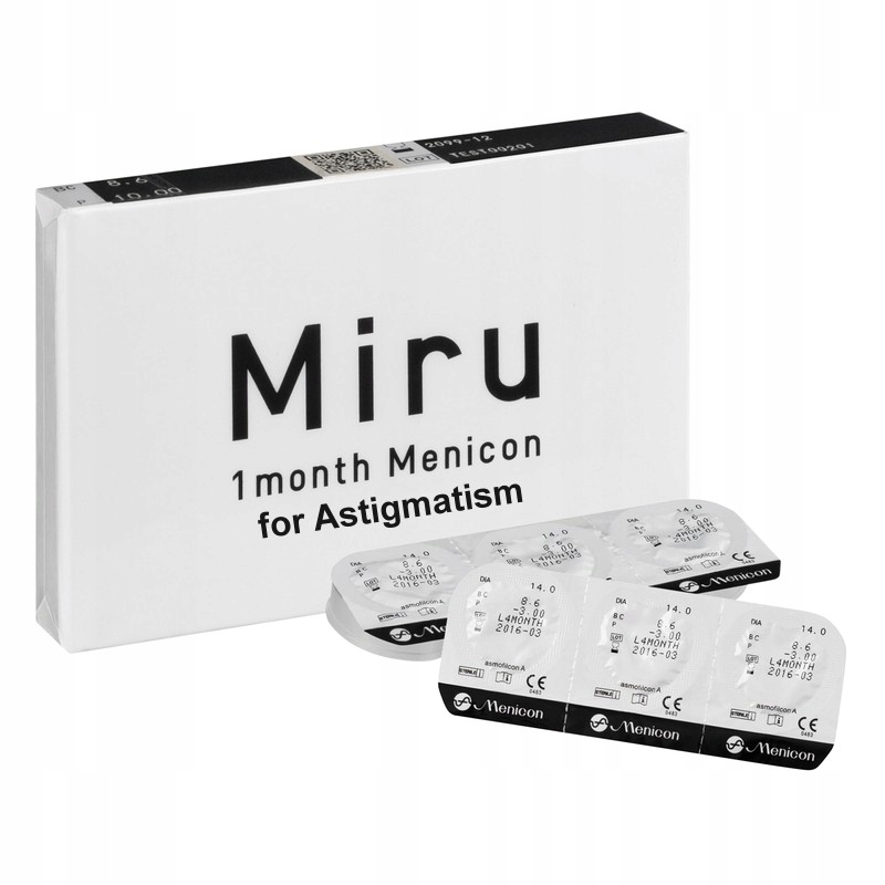Miru 1month for Astigmatism - це місячні торичні лінзи, призначені для щоденного використання. Вони забезпечують комфорт при носінні навіть протягом тривалого часу.