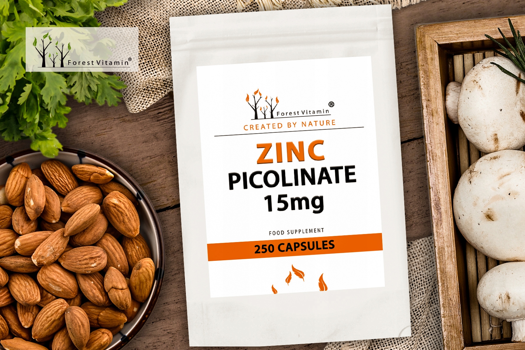Органічна сіль цинку, що добре засвоюється, покриває 150% добової потреби організму дорослої людини в цьому елементі. Дієтична добавка Forest Vitamin® не містить сої, глютену та лактози, а також не містить генетично модифікованих речовин. Піколінат цинку є органічною сіллю - в такому вигляді елемент легко засвоюється організмом, не містить цукру, інших підсолоджувачів і консервантів.