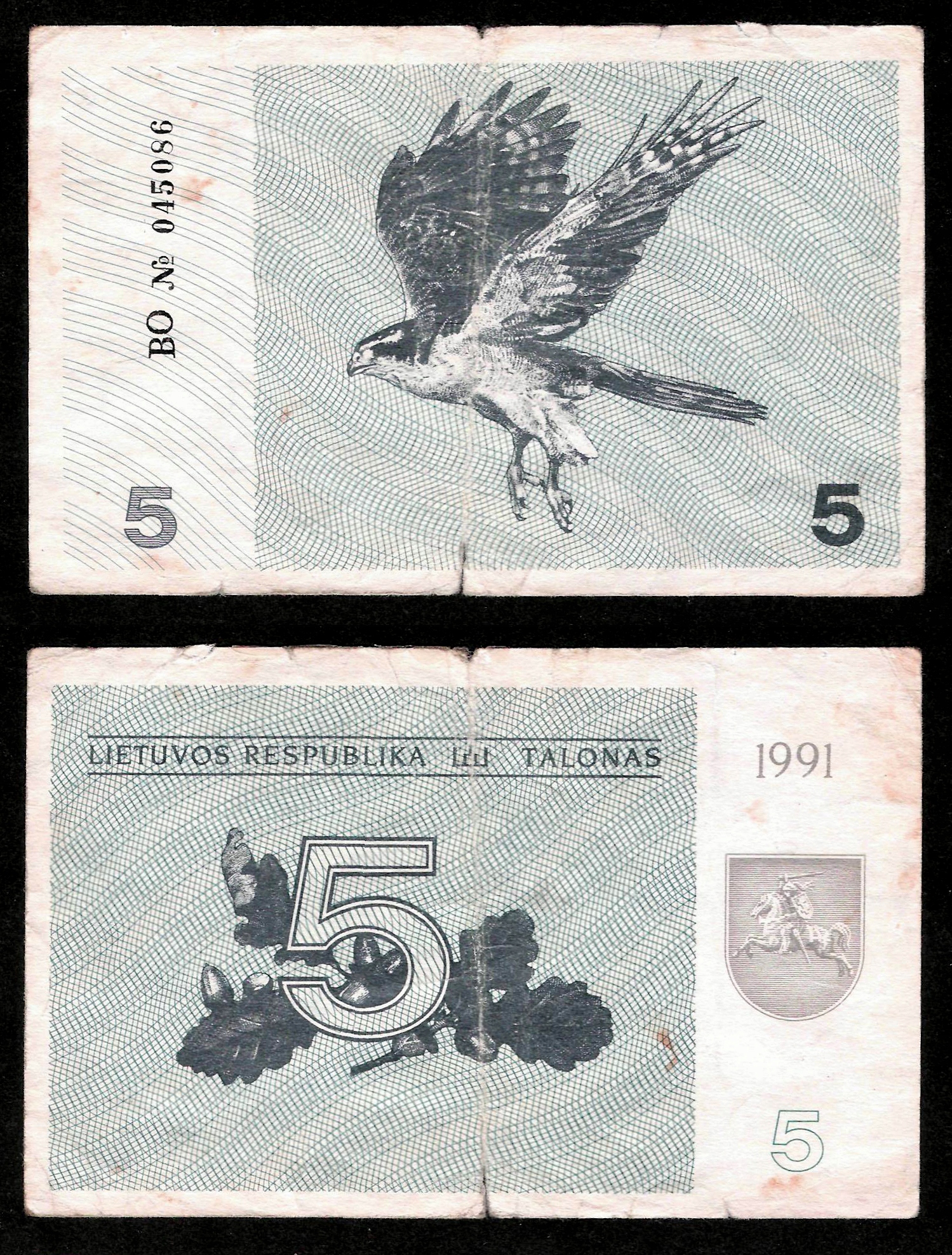 Litwa - Lithuania 1991 - 5 talonas - Pick 34a F-VF (without text) BO045086