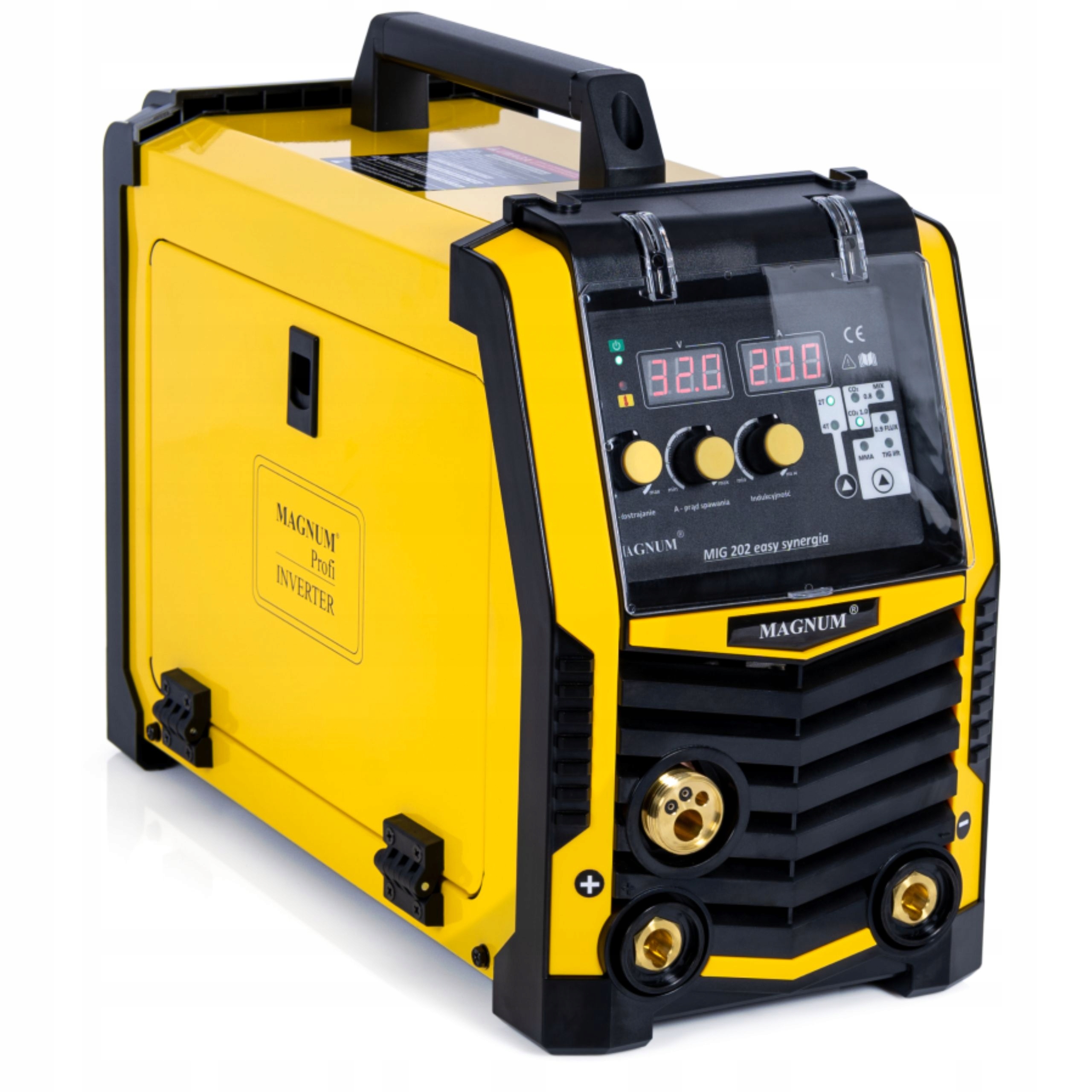 ...універсальний зварювальний апарат поєднує сучасні технології, інтуїтивно зрозуміле керування та міцну конструкцію, пропонуючи високоякісна робота як для професіоналів, так і для любителів. Завдяки функції синергії, мобільності та можливості роботи різними методами зварювання, Magnum® MIG 202 Easy Synergia впорається з будь-яким викликом.