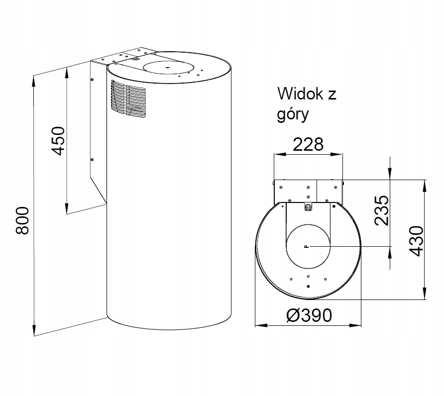 - Діаметр виходу: 15 см