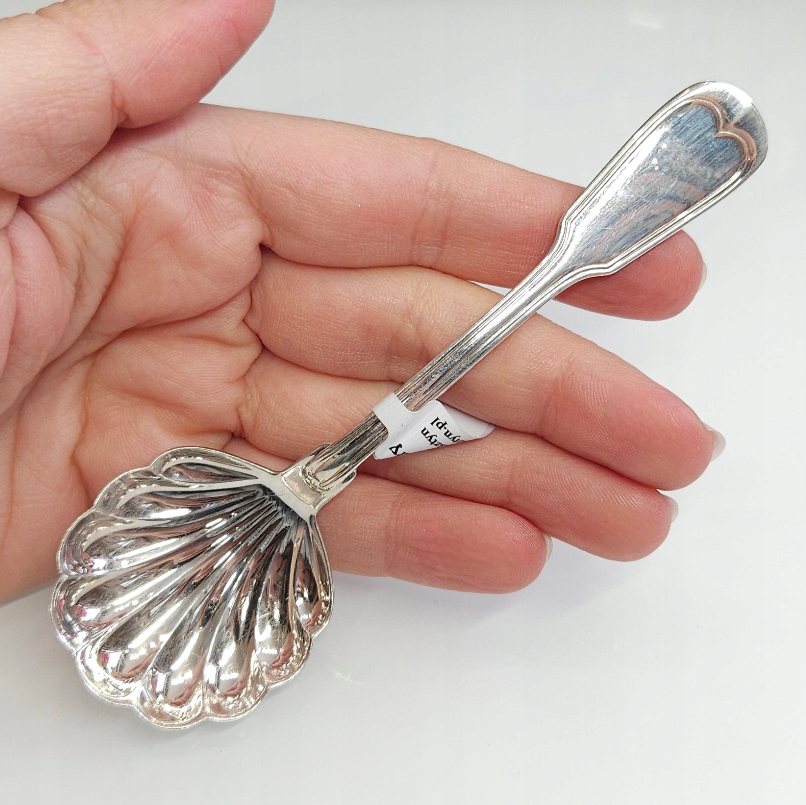 Ложка для цукру срібна, срібло 0.800, пряма ручка, черепашка
