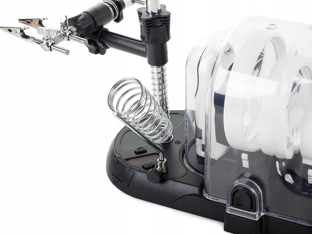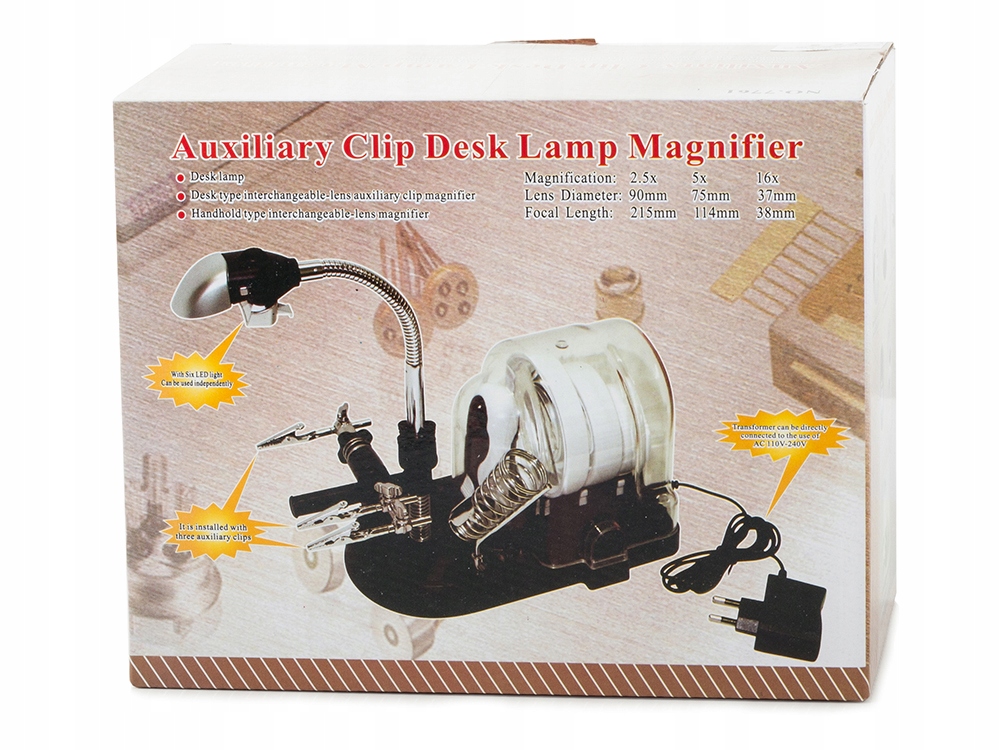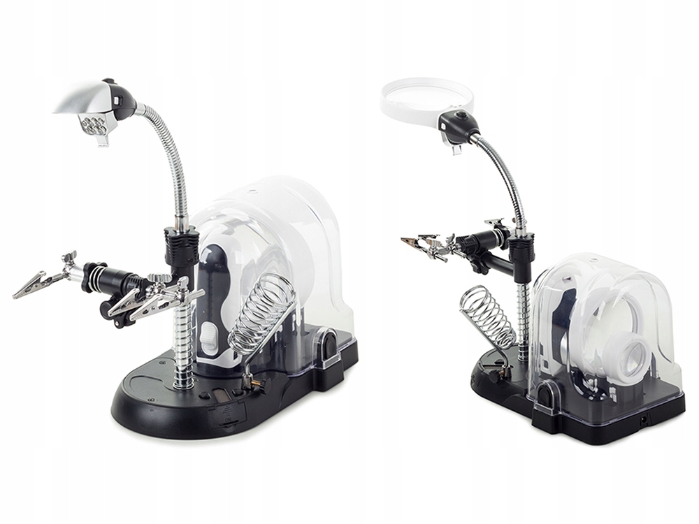 Професійна третя рука зі змінними лінзами 2,5x 90 мм; 5x 75 мм; 16x 37 мм - ідеальний пристрій для самостійного. Його можуть використовувати ювеліри, нумізматики, технічні працівники електроніки, годинники тощо.