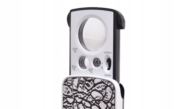 - Лупа для читання з підсвічуванням із трьома лінзами 30x, 60x, 90x і додатковою функцією ультрафіолетового випромінювання