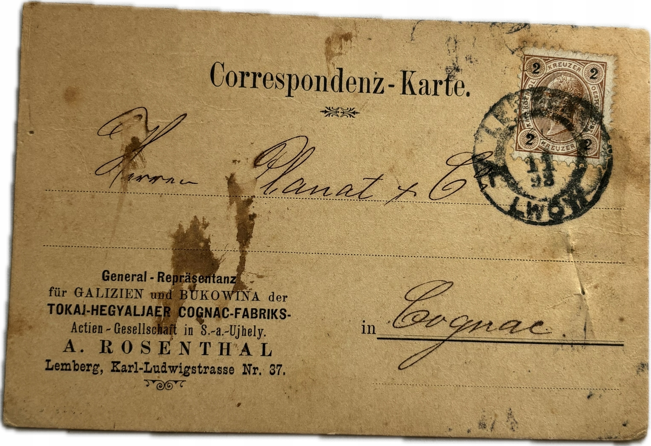 Lviv Rosenthal представник вин та коньяки -фабрики Bukowina 1898